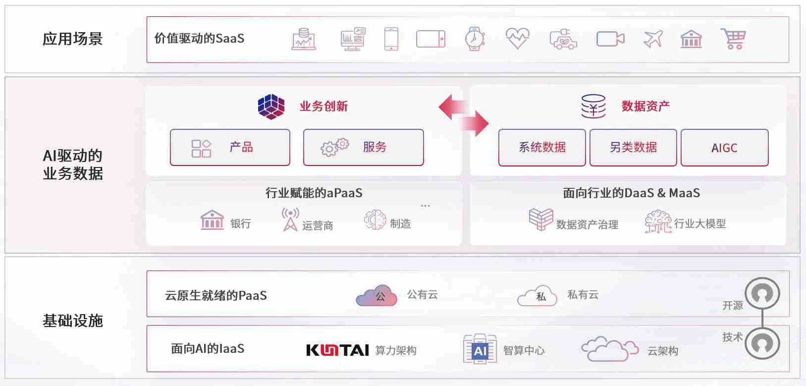 数字时代,,,,围绕企业数字化转型的关键要素,,,,宝博游戏数码开创性的提出数云融合战略和技术体系框架,,,,着力在云原生、、数字原生、、、、AI原生和信创产业上架构产品和服务能力,,为处在不同数字化转型阶段的快消零售、、、汽车、、、、金融、、医疗、、政企、、、、教育、、、、运营商等行业客户提供泛在的敏捷IT能力和融合的数据驱动能力,,,,构建跨界融合创新的数字业务场景和新业务模式,,,助力企业级客户建立面向未来的核心能力和竞争优势,,全面推动社会的数字化、、智能化转型升级。。。